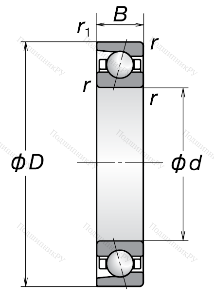 Однорядный шариковый подшипник 7011 A (46111 Л ГОСТ)