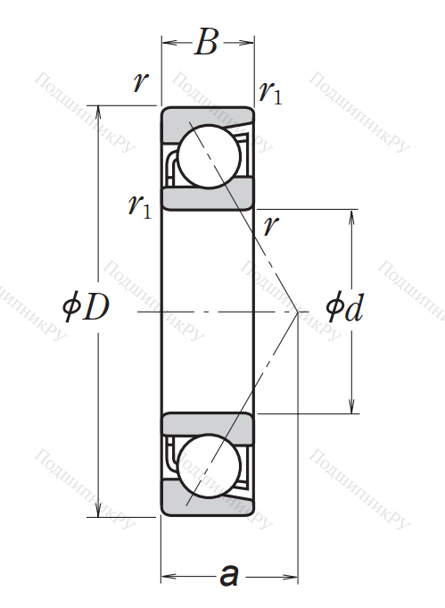 Однорядный шариковый подшипник 7316 BW (66316 ГОСТ)