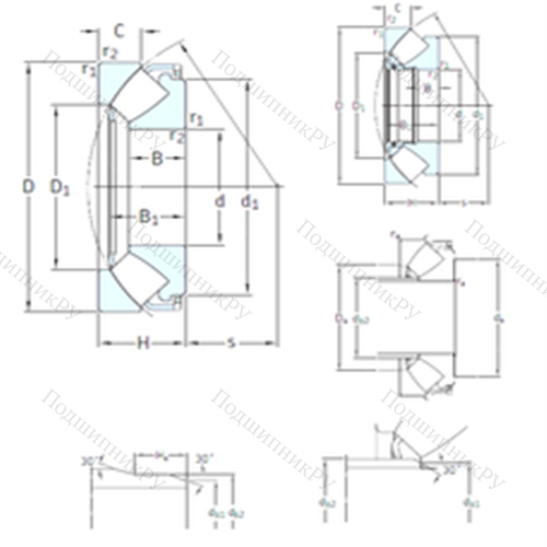 - Обладает более широкой зоной передачи усилий в сравнении с шарикоподшипниковыми аналогами, однако предназначен исключительно для работы с малыми скоростями вращения.