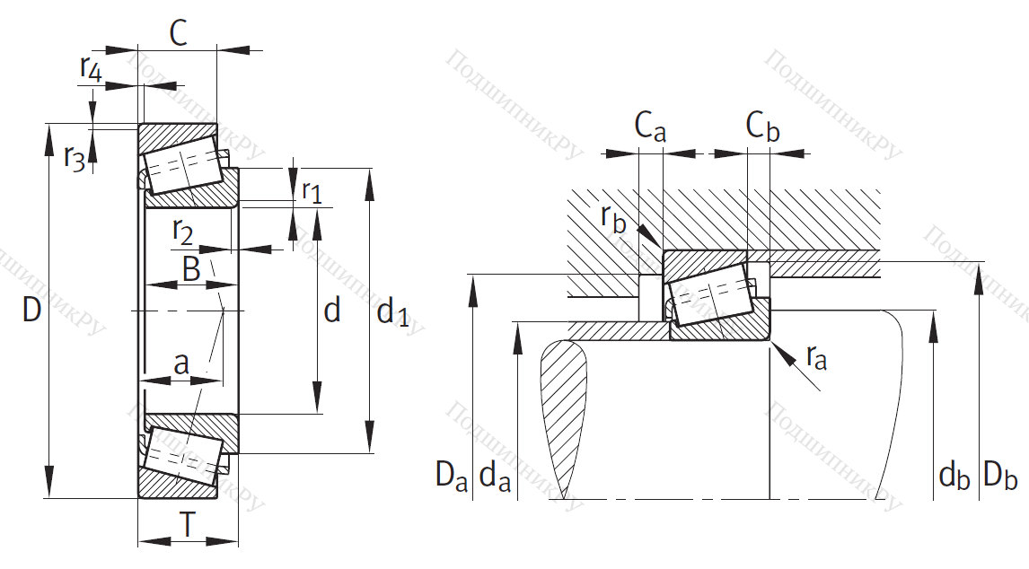 - Соотношение комбинированных нагрузок компенсируется с помощью контактного угла дорожек качения.