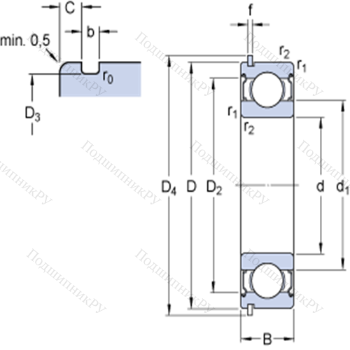 Однорядные радиальные шарикоподшипники с канавкой под стопорное кольцо 6203-2ZNR