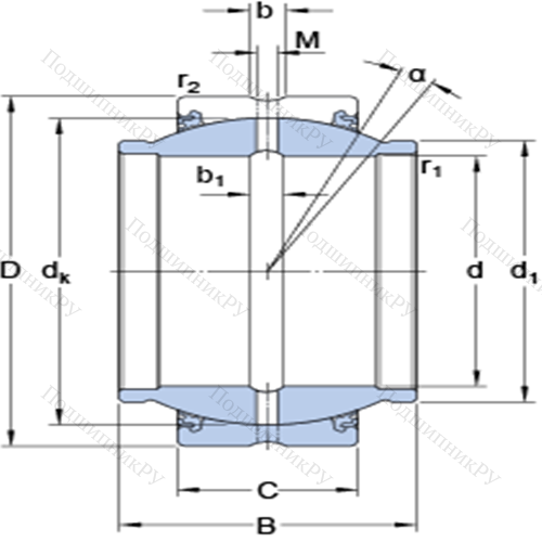 Радиальные сферические подшипники скольжения с контактными поверхностями сталь/сталь, требующие техобслуживания GEM 35 ES-2LS конструкция которого представлена внешним кольцом, внутри вращается внутренняя обойма. Существуют прямые, шарнирные (самовыравнивающиеся), угловые, гидравлические, двойные шарикоподшипниковые и роликоподшипниковые варианты исполнения. Отдельные разновидности изделий (с парой трения «сталь – сталь») нуждаются в обслуживании и имеют каналы для подачи смазки, в то время как другие не нуждаются в ТО. В первом случает система включает в себя пару стальных шин, обработанную предварительно фосфатами и дисульфитом молибдена. Необслуживаемые модели покрываются политетрафторэтиленом, армируются медью и дополнительно усиливаются хромом.